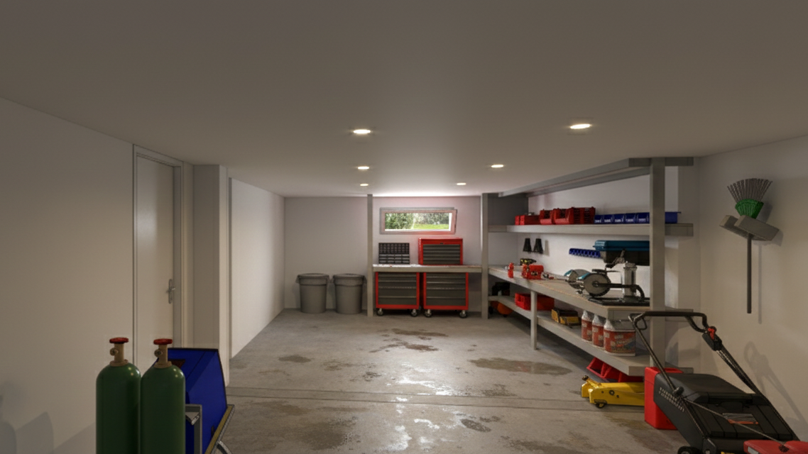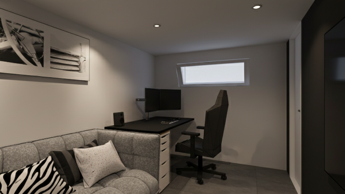• aménagement du sous-sol avec garage, cave, chambre d’amis, salle d’eau, bureau et buanderie