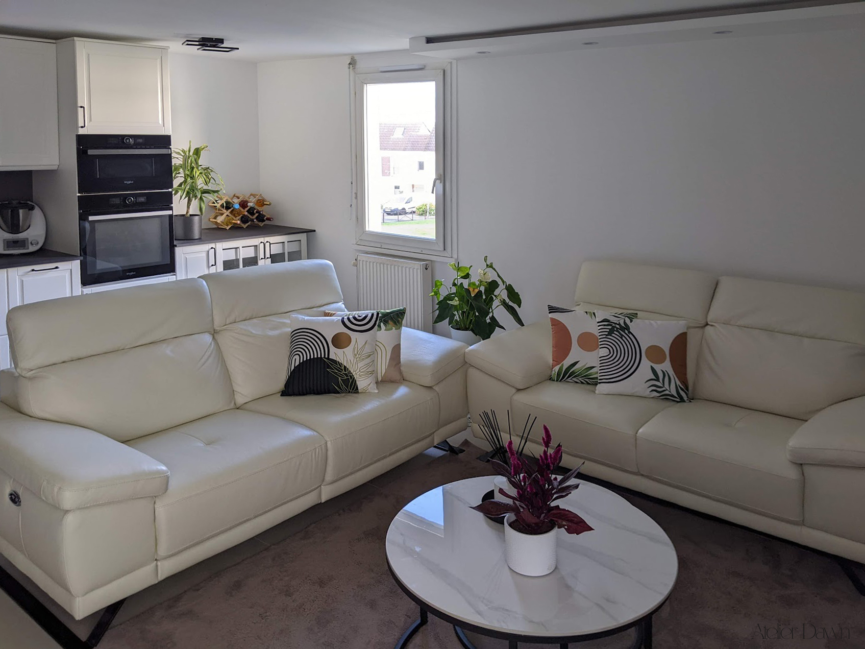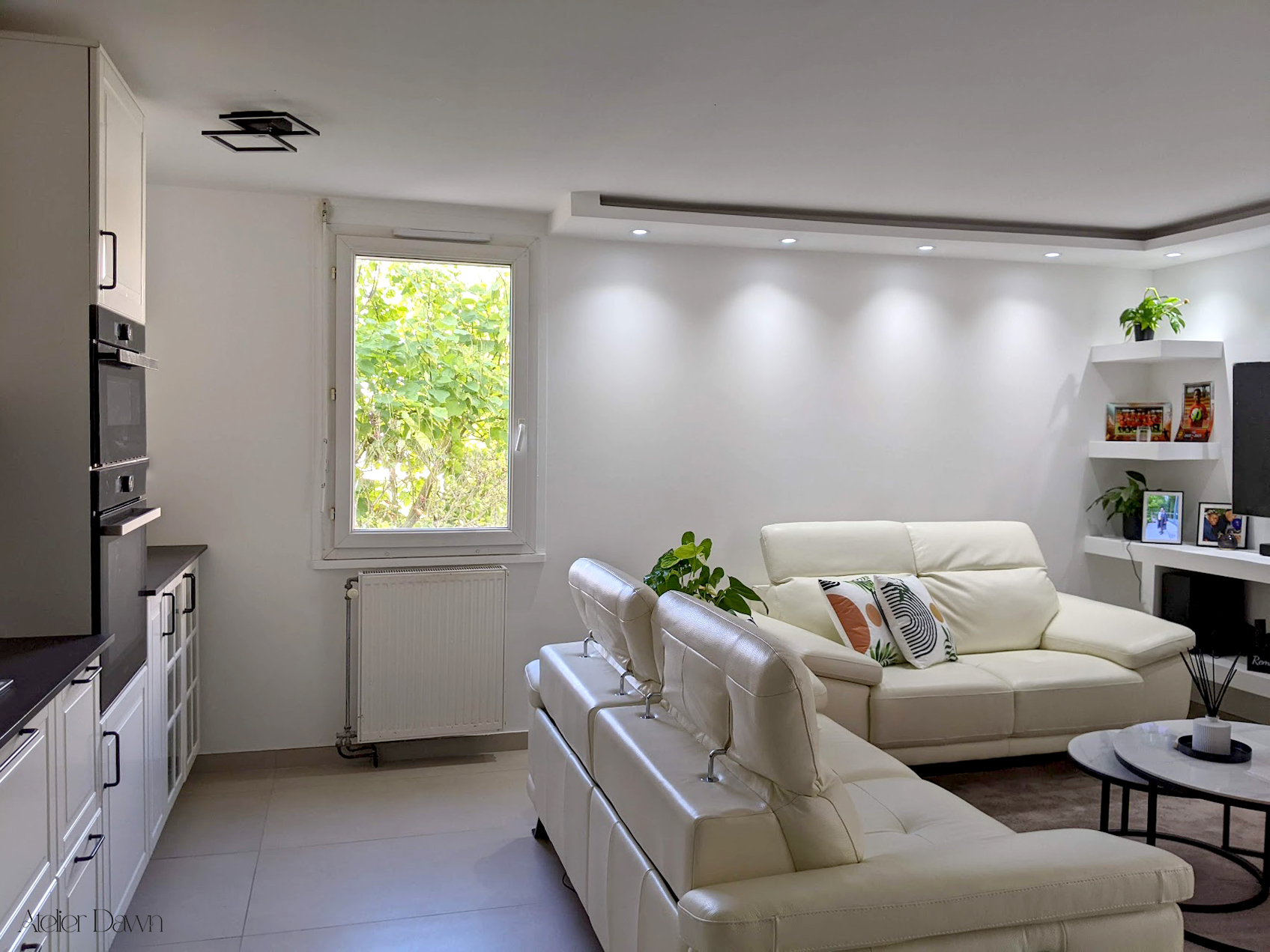 Réagencement et décoration des pièces de vie : entrée, salon, cuisine, buanderie