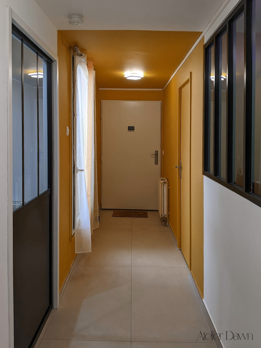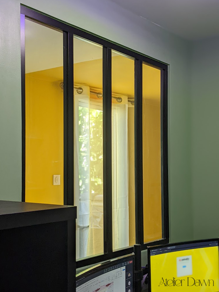 - ouverture d’une verrière sur le bureau pour bénéficier de la lumière venant de l’entrée et du salon